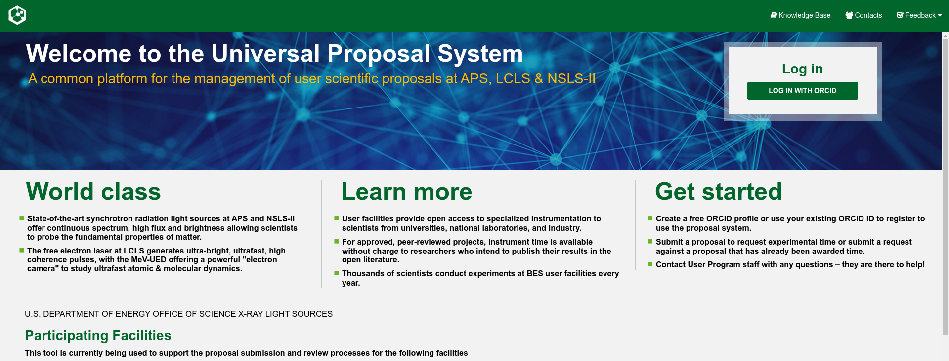 Log in with your ORCID account and then select the Advanced Photon Source in the lower panel.