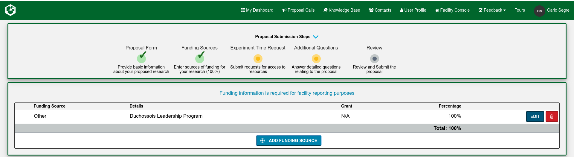 Enter all the appropriate funding source information.