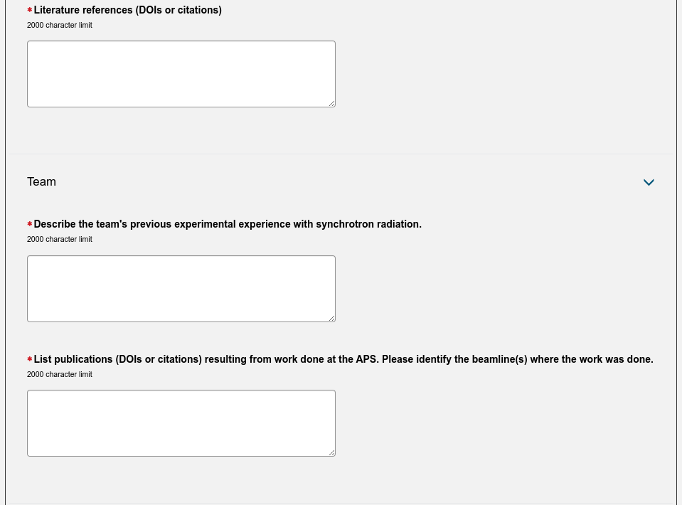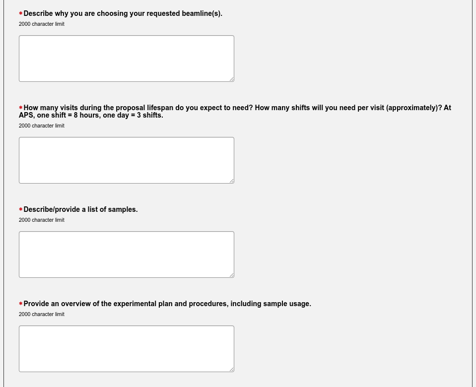 This is the meat of the proposal. Here you need answer questions about the scientific merit of the proposed experiment, why you have chosen a specific beamline and the APS, and make a strong case for the amount of time you have chosen to request for your experiment. The latter needs to be justified as carefully as possible. You need to describe the experiment itself and let the review panel know about the experience of your team. Include any references.