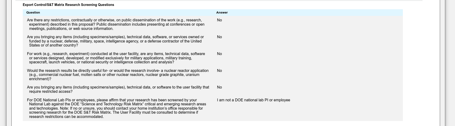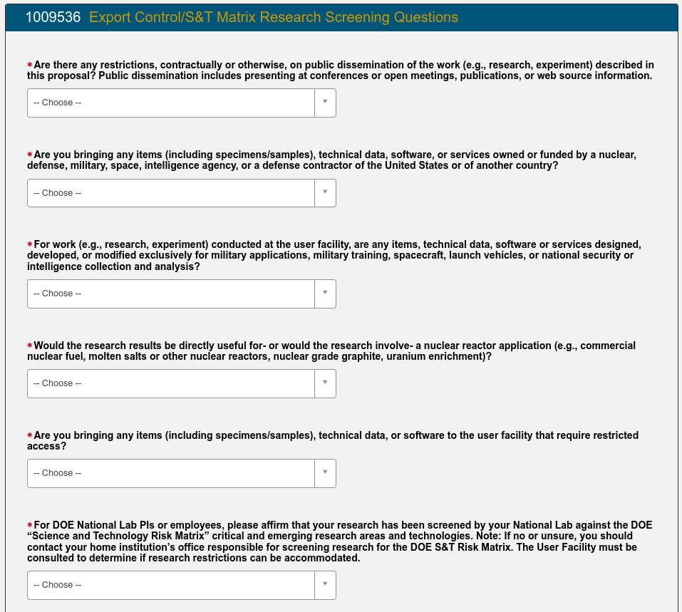 Finally the Export Control questions need to be filled out.