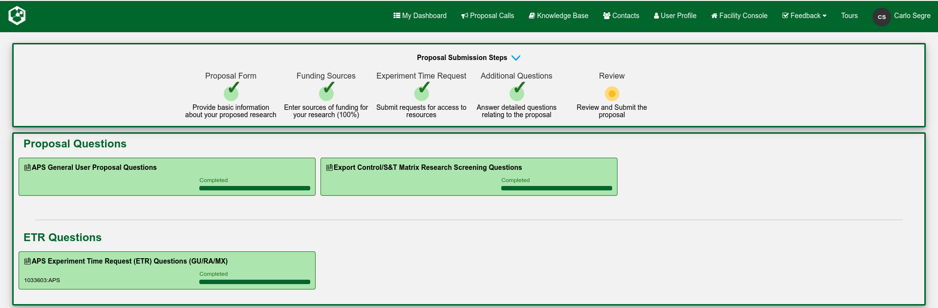 When all the questions have been answered, you can move to the final stage of the proposal submission.